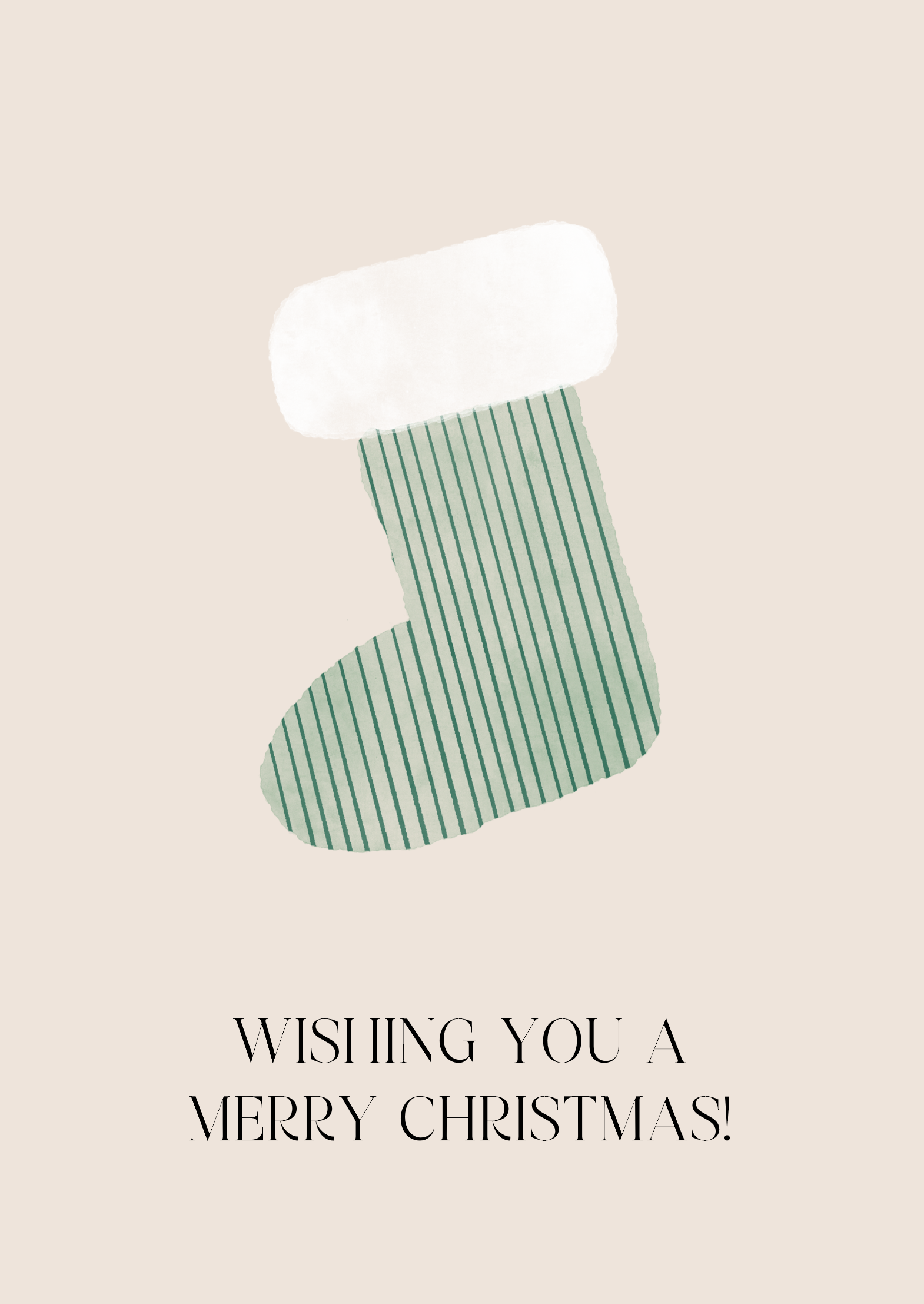 Spread holiday cheer with this beautifully simple greeting card featuring 3 digitally hand-drawn Christmas sock designs to choose from, all drawn in watercolour style. Perfect for those who appreciate minimal designs.