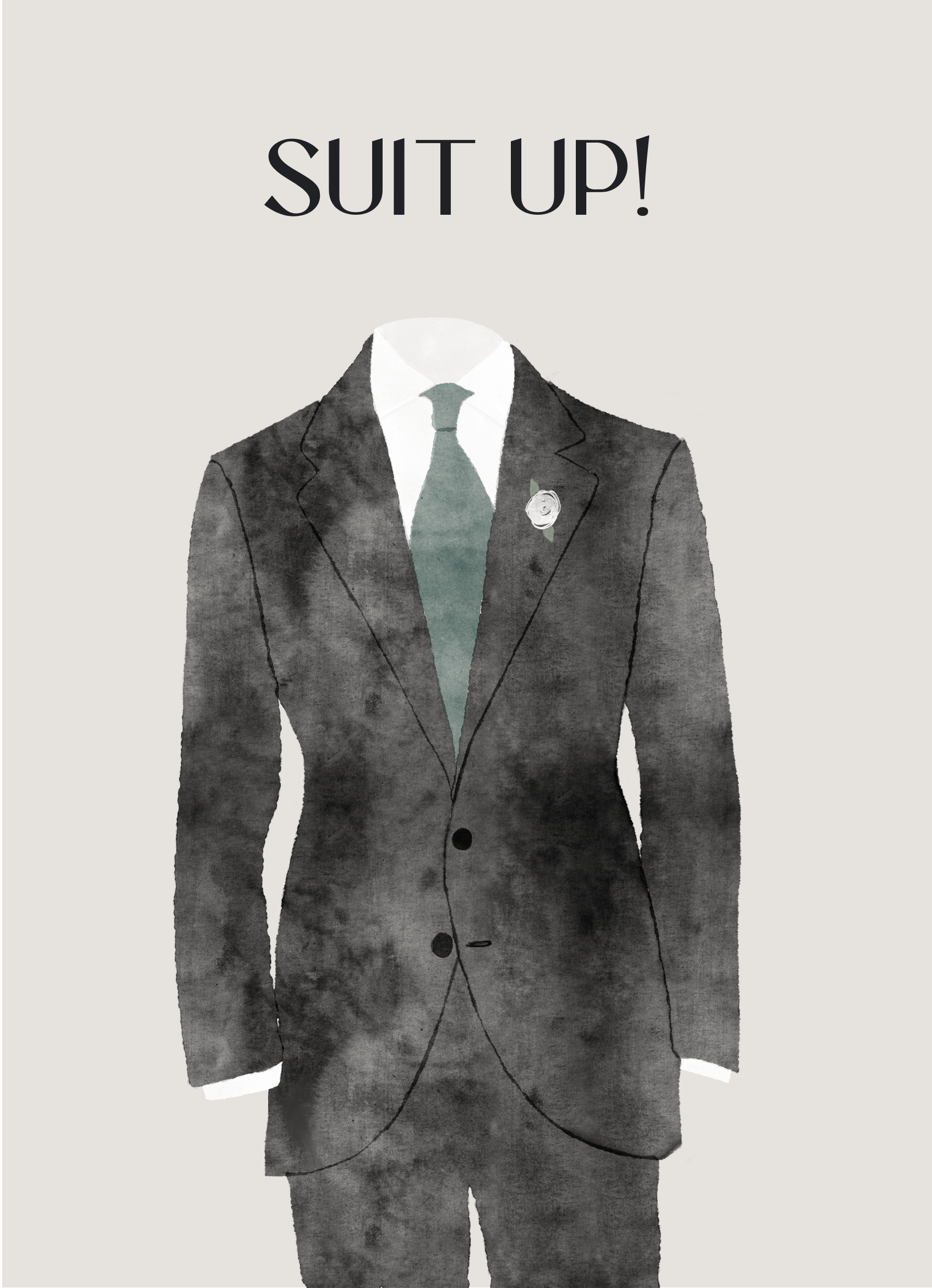 Ask your grooms team to stand by your side in style! This elegant groomsmen proposal card features a digitally hand-drawn watercolour illustration of a classic suit and tie — designed to be as sharp as your wedding crew. Personalise it by choosing custom suit and tie colors to match your wedding theme or each groomsman’s style.