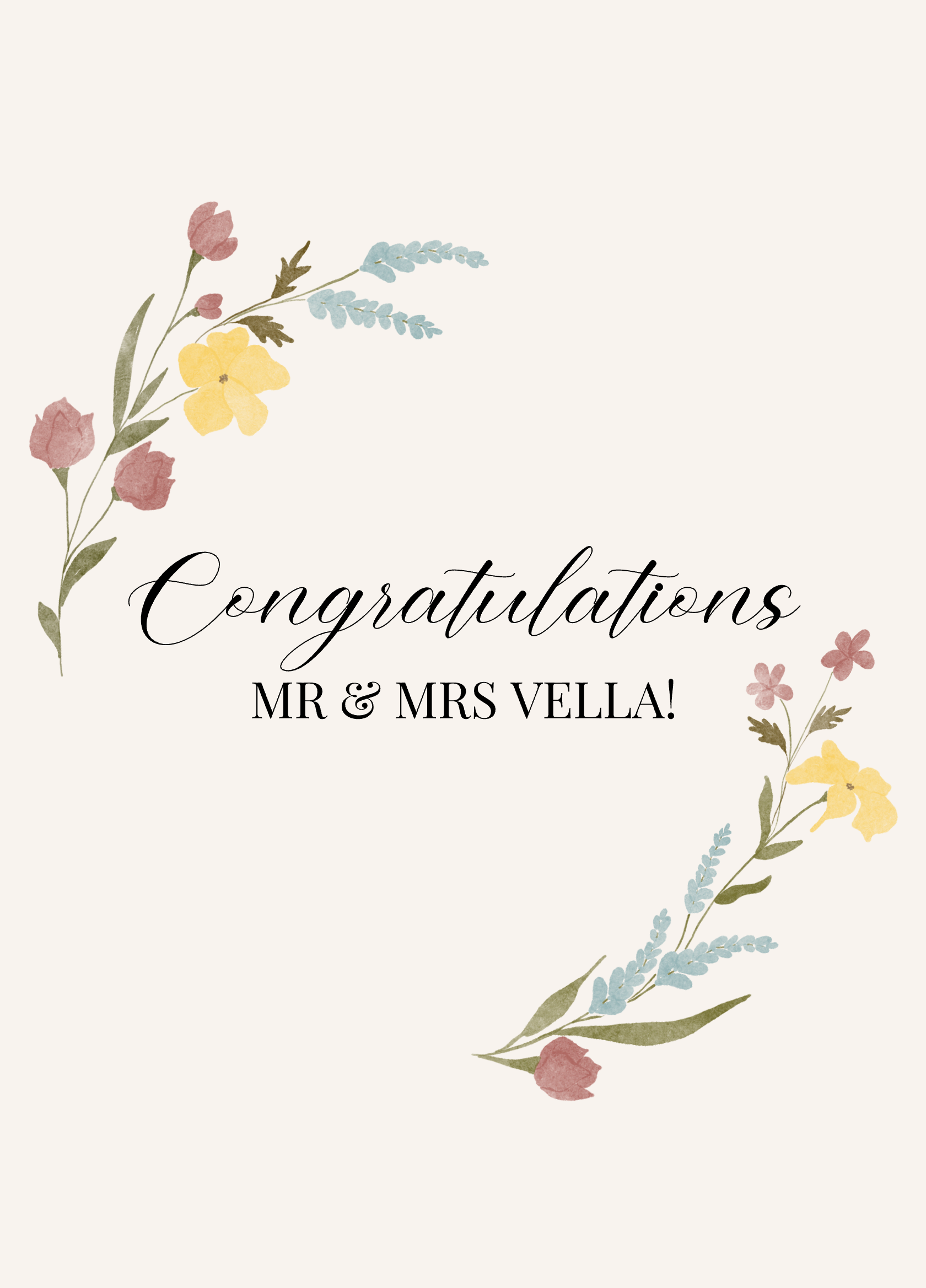 Celebrate love with our beautifully customisable Wedding Card! Featuring delicate, digitally hand-drawn watercolour flowers, this elegant design is perfect for gifting or framing as a keepsake. Choose from our existing text options or personalise it with your own message to make it truly unique.